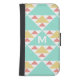 Stylish wallet style Samsung Galaxy S4 case, with graphics of a turquoise, yellow, coral and white tribal triangle pattern. A white one letter monogram, in the middle, is ready to personalize. Makes a great gift idea.
