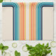Retro style illustration with colorful (yellow, blue, orange, navy blue, beige, turquoise) arches decoration on beige background. You can add your name/monogram to personalize the item.
