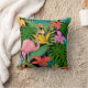 Colorful tropical design with pink flamingo and tropical palm leaves