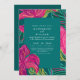 Colorful Tropical Floral Emerald green Wedding Invitation