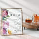 This colorful tropical floral wedding drinks sign is perfect for your modern boho destination green, purple, peach wedding. Design features an elegant bouquet of classic beach watercolor greenery and flowers, including sage green eucalyptus, mauve and red protea, blush pink hibiscus, orange and blue bird of paradise, and dark green palm leaf. The design is ideal for a simple, creative, unique travel wedding for spring, summer, fall, or winter! Please find other matching or coordinating wedding stationery in the rest of the collection.