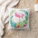 Colorful Tropical Floral Wreath & Pink Flamingo Throw Pillow