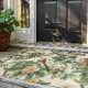 This tropical theme dor mat design features lush tropical flowers and birds, perfect for your tropical home to invite guests in.