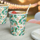 Add the perfect finishing touch to your child's summery tropical jungle themed birthday party with these colorful patterned paper cups. Island chic design features a repeating pattern of monstera leaves and green watercolor foliage with monkeys, sloths, parrots, and hummingbirds adorned with pink and yellow tropical flowers.