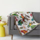 Colorful Tropical Parrots, Leaves & Flowers Throw Blanket