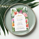 A beautifully lush tropical party menu design with colorful watercolor floral elements that include hibiscus blooms, ginger flowers and a variety of tropical foliage surrounding a stylish arched frame. The looks is vibrant and alive and sets the tone for your celebration in aloha style. Personalize the easy-to-use text template with your menu items. If you need to move the text around, add or remove lines of text, select "click to customer further", which will open up the design template to make additional changes. Whether you are having an outdoor barbecue or a poolside luau, this menu is a beautiful choice.