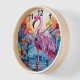 Colorful Tropical Pink Flamingo Modern Watches features a colorful tropical paradise with a pink flamingo surrounded by tropical flowers. Created by Evco Studio www.zazzle.com/store/evcostudio