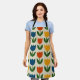 A stylized tulip pattern composed with sculptural clarity and rhythmic precision. Bold blooms in red, yellow and blue are arranged in a balanced grid over a soft beige background, creating visual harmony through repetition and contrast. The design evokes mid-century modern sensibilities with its clean lines, geometric flow, and emotionally resonant color palette.