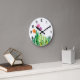 This clock features a fresh spring design with orange, pink and purple tulips and green vegetation. The clock is perfect for adding that "spring look" to your home and also would make a great Mother’s Day gift.