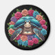 Colorful Turtle Illustration Surrounded by Roses Magnet