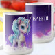 Featuring a cute unicorn on one side. On the other side your personalized name.