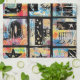 Colorful urban graffiti patchwork pattern kitchen towel featuring bold abstract blocks, expressive brush strokes, scribbles, stars, and mixed-media textures in bright blue, yellow, pink, orange, and black. Energetic and edgy with a modern street art aesthetic, this seamless design is ideal for graffiti art lovers, maximalist style fans, creative teens, and contemporary art enthusiasts.