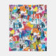 Colorful urban graffiti patchwork pattern blanket featuring bold abstract blocks, expressive brush strokes, scribbles, stars, and mixed-media textures in bright blue, yellow, pink, orange, and black. Energetic and edgy with a modern street art aesthetic, this seamless design is ideal for graffiti art lovers, maximalist style fans, creative teens, and contemporary art enthusiasts.