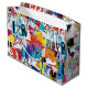 Colorful urban graffiti patchwork pattern gift bag featuring bold abstract blocks, expressive brush strokes, scribbles, stars, and mixed-media textures in bright blue, yellow, pink, orange, and black. Energetic and edgy with a modern street art aesthetic, this seamless design is ideal for graffiti art lovers, maximalist style fans, creative teens, and contemporary art enthusiasts.