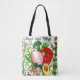 Colorful, bold and bright greens and reds fresh vegetables and herbs art by Patricia Villa. Various hand drawn vegetables and herbs on tote bag. Fun bright bag to take shopping.