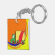 Never lose your keys again with this eye catching transportation theme keychain. This small but mighty accessory showcases a stylized cartoon van in a bright geometric layout that stands out on any bag or keyring. Whether you are a fan of vintage illustrations or looking for a unique housewarming gift for a new mover, this durable keychain offers a high quality print of a classic colorful vehicle.