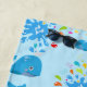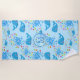 Colorful Water Splash Blue Whale Monogram Pattern Beach Towel