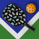 Colorful Watercolor Bunnies Pattern on Black Pickleball Paddle