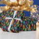 Wrapping paper featuring a pattern of colorful watercolor Christmas trees.