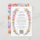 Colorful Wedding Enclosure Card. Keep your guests informed with a beautifully designed details card that’s as stunning as the rest of your suite. Ideal for a spring, summer, or whimsical fall event, this card features an elegant watercolor wreath filled with colorful peonies in blush pink, fuchsia, orange, and golden yellow, along with lavender purple roses, blue delphinium, daisies, wildflowers, and a soft butterfly for added charm. A QR code on the front provides quick access to wedding info, while the back showcases a coordinating pattern for a cohesive finish. Create a stylish, helpful piece that ties your entire wedding vision together—start personalizing today.