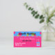 Whimsical business card, done in blue, green, and hot pink, with graphics of polka dots, flowers and birthday cake. Personalize the text fields for your business needs.