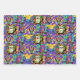 Pretty colorful folk art whimsical owl art birthday wrap.