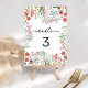 Modern boho bright wild flowers bohemian bridal shower wedding table nummer. Featuring pink, peach, and green hues botanical flowers inspired by wildflowers and watercolor rustic gardens with subtle greenery and modern boho script typography on white background.