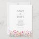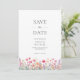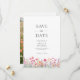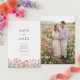 Announce your upcoming wedding with this colorful wildflower save the date card. It features a pretty border of pink, coral and purple watercolor boho florals on a crisp white background. Personalize with your photo on the back. This design is perfect for couples planning a romantic spring or summer cottage garden ceremony with a botanical theme.