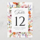 Add a beautiful botanical accent to your reception with this Colorful Watercolor Wildflower wedding table number card, featuring a vibrant floral frame of wildflowers in shades of pink, orange, burgundy, purple, red, and yellow accented with soft greenery. “Table” is displayed at the top in elegant calligraphy script, with the table number, couple’s names, and wedding date shown below in a clean, refined layout. The surrounding wildflower frame creates a romantic garden-inspired look that complements outdoor receptions, estate venues, and floral wedding themes. The 5"x7" size offers excellent visibility on reception tables and is available for professional printing or as an instant download for convenient at-home printing. Edit each table number individually and add them to your cart to ensure a smooth ordering process.