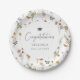 Colorful Wildflowers Graduate Paper Plates. Serve up a celebration in style with these gorgeous paper plates featuring a vibrant floral design of hand‐painted boho wildflowers in dark blue, bright pink, blush pink, golden yellow, vibrant red, and sage green. Ideal for transforming every meal into a festive moment, you can personalize the message, colors, and backgrounds to add a unique touch to your table—make every bite a work of art!