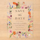 Announce your wedding date with this colorful watercolor wildflower acrylic wedding save the date, featuring your names, wedding date, and location displayed at the center of a vibrant floral arrangement. A graceful border of watercolor wildflowers and greenery in shades of coral, pink, orange, yellow, burgundy, purple, and blue surrounds the design, creating a romantic botanical presentation that draws attention to your wedding details. Classic serif lettering paired with delicate calligraphy accents adds a timeless and sophisticated touch. Perfect for garden weddings, spring and summer weddings, and floral-inspired wedding themes, this acrylic save the date offers a polished and memorable way to share your special day.