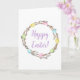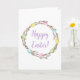 Colorful Willow Wreath And Eggs Happy Easter Card