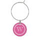 Colorful wine charms with monogram initial letters. Monogrammed wine charm set with custom color background. Make them in different colors to prevent mix ups with drinking glasses. Cute idea for chic wedding party, bridal shower, birthday celebration, wine tasting, holiday party, bachelorette, girls weekend and other occasions. Elegant typography letter. Classy design with stylish round border. Cheerful party supplies and accessories. Trendy favor gift idea for guests or wine lover. Pink, orange, apple green, aqua turquoise blue etc.