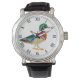Original fine art design of a colorful male Wood Duck by artist Carolyn McFann of Two Purring Cats Studio printed on a quality and customizable watch for all who love ducks and other water birds.