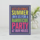 In bright, cheerful colors of yellow, green, blue and purple, this graphic design of bold text will invite your guests to your next summer barbecue in fun style. Each line on the back can be customized to suit your needs.