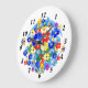 Colourful Art Deco Flowers Large Clock