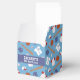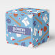 This favor box is perfect for any baseball theme party for birthdays or baby showers! It has many colourful baseball elements which include cute baseball tees like the striped tee with different colour sleeves and collar, a vest like tee with the alphabet B, baseball, bat, helmet, cap, mitt and decorations with stars. Personalise with party details.