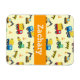A cute and colourful construction vehicles theme pattern magnet for the boys. The pattern is make up of lots of construction elements like a red and yellow dump truck carrying the debris, an orange excavator, a green front loader pushing dirt, a blue and yellow concrete mixer, orange and white cones and a yellow and black construction zone barrier. Personalise child's name within space available. Perfect for boys who love construction vehicles, toys and machines!