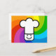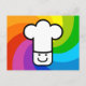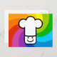 Simplistic image of a Cartoon chef's head over a colourful twisting background.