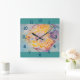 Colourful Fish Watercolour Childs Boys Nursery Squ Square Wall Clock