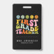 Colourful Fun First Grade Teacher Custom Name Badge