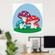 A group of three brightly coloured mushrooms. This design looks really effective on these Poster
