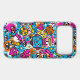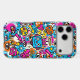 Upgrade your tech with some retro-future cool. This high-quality glossy case for the iPhone 17 Pro Max features a maximalist pattern of stylized neon robots, all-seeing eyes, stars, and hearts set against a vivid spray-paint background. A great gift for tech lovers and sci-fi fans.