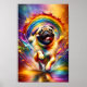 Colourful Pug Rainbow Splatter Art for Pug Lover Poster