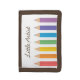 A wallet designed with a set of colouring pencils in the colours of the rainbow of red, orange, yellow, green, blue, indigo and purple, arranged neatly together. A colourful and attractive design for kids. Suitable for the new school year! Personalise with little artist's name or short phrase.