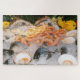 This colourful jigsaw features my photograph of a seafood display, which was in the front of a Restaurant in Venice. Squid, prawns, scallops and fish, nestle on a bed of ice with bright vegetables in the background.