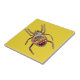 Colourful and bright, this is a hand drawn illustration of a doodle designed spider by artist Sacha Grossel. This bright and hip arachnid is arty and tribal and kind of cute. It is on a mustard yellow background. The background colour can be customised to your taste.