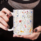 Colourful watercolour wild flower mug with pretty wild country flowers in purple, lavender, green leaves and more, You can change the background colour.