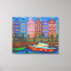 A vibrant and lively stylized night scene of Amsterdam's colorful, narrow houses along the canals on a canvas print by popular artist Lisa Lorenz