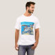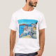 Vibrant, stylized painting of beautiful Santorini, Greece with its majestic blue dome by popular artist Lisa Lorenz on a stylish Tshirt. Available for all shirt styles, sizes for men, women and children.